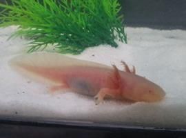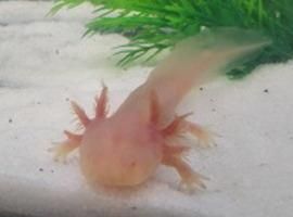 エサは冷凍赤虫でも、固形餌でも食べます。目が少し悪いといわれており、多くの飼育者は冷凍赤虫を多めに固形餌を少し足して併用して与えています。このサイズからエアーレーション、ろ過機の使用はおおむね大丈夫です。使用はじめは水流があまり起きないように注意します。また、上部ろ過機などには吸い込まれる場合もありますので、給水口にはスポンジを使用することをお勧めします。冷凍赤虫が使用できずに固形餌から育てたい、また、安定したウーパールーパーから育てたい飼育者にもお勧めです。また、病気になりにくいサイズです。体色は黄色っぽいか白(ピンク)っぽい個体を値段は100円UPしますが、ご希望により選択可能です。